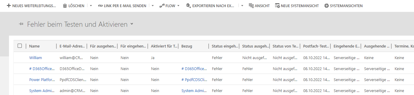 Sie können auf die fehlerhaften Postfächer zugreifen, indem Sie die Ansicht Fehler beim Testen und Aktivieren anzeigen.