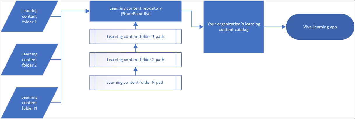 Wissensadministratoren können auf das Inhaltsrepository ihrer organization in SharePoint zugreifen, wo sie Verweise auf organization Dokumentbibliotheken bereitstellen können. Inhalte in diesen Bibliotheken sind Lerninhalte in Viva Learning.