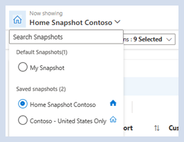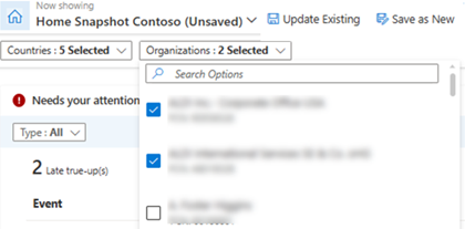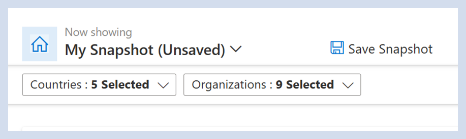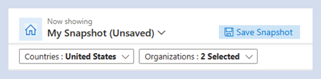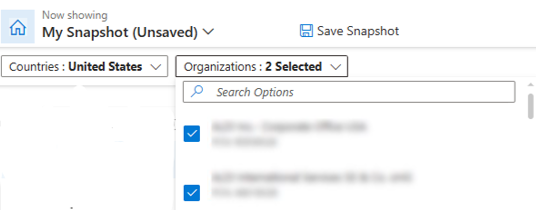Hinweis: Wenn eine gespeicherte Momentaufnahme geöffnet wird, werden alle Organisationen und Regionen angezeigt, die dem Benutzer zugeordnet sind, aber die ausgewählten für diese gespeicherte Momentaufnahme werden oben in der Dropdownliste angezeigt.