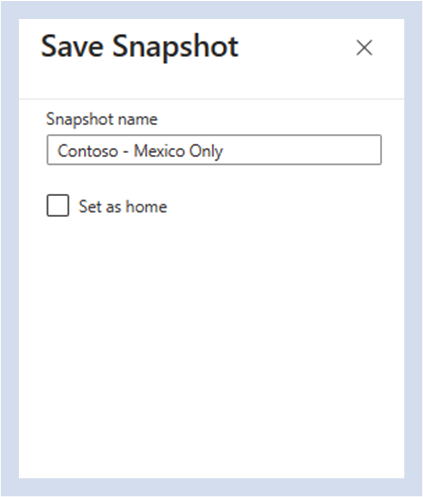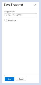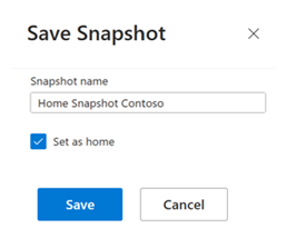 Wenn Sie "Momentaufnahme speichern" auswählen, wird eine Eingabeaufforderung zum Auswählen eines Momentaufnahmenamens angezeigt. Aktivieren Sie "Als Start festlegen", wenn Sie Ihre Startmomentaufnahme in diese gespeicherte Momentaufnahme ändern möchten. Wählen Sie Speichern.