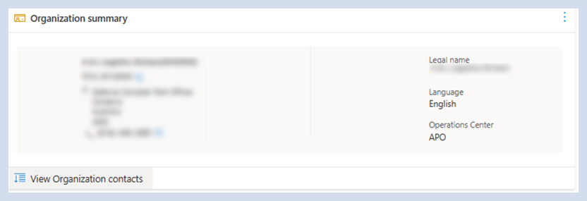 Hinweis: Wenn eine einzelne Organisation ausgewählt ist, werden alle wichtigen Informationen, einschließlich Adresse und Kontaktinformationen, auf der Karte "Organisationszusammenfassung " im unteren rechten Dashboard angezeigt.