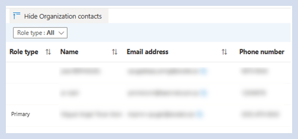 Wählen Sie " Organisationskontakte anzeigen" aus, um die Kontakte in der ausgewählten Kundenorganisation anzuzeigen.