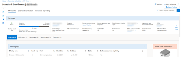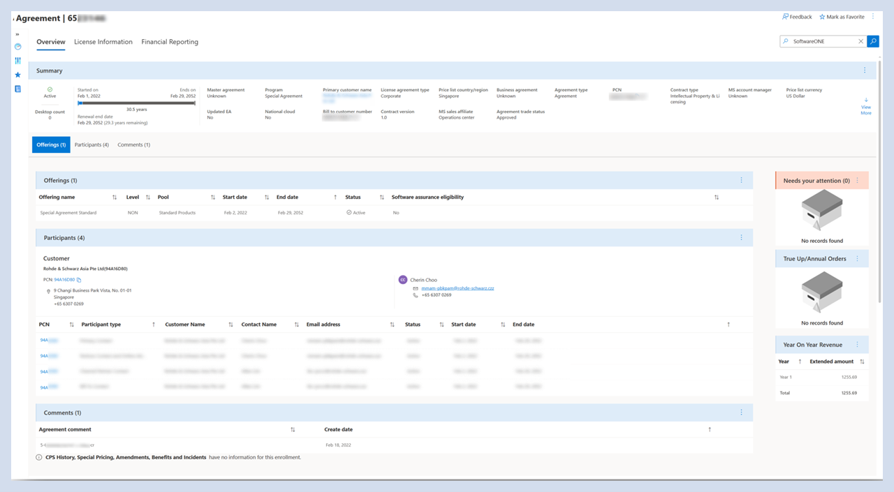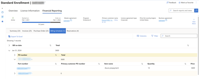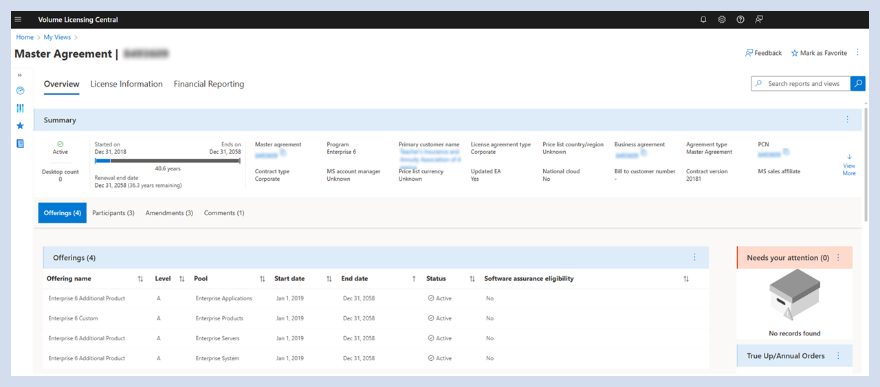 Die Übersicht über die Vereinbarung enthält Abschnitte zu allen relevanten Vereinbarungsinformationen.