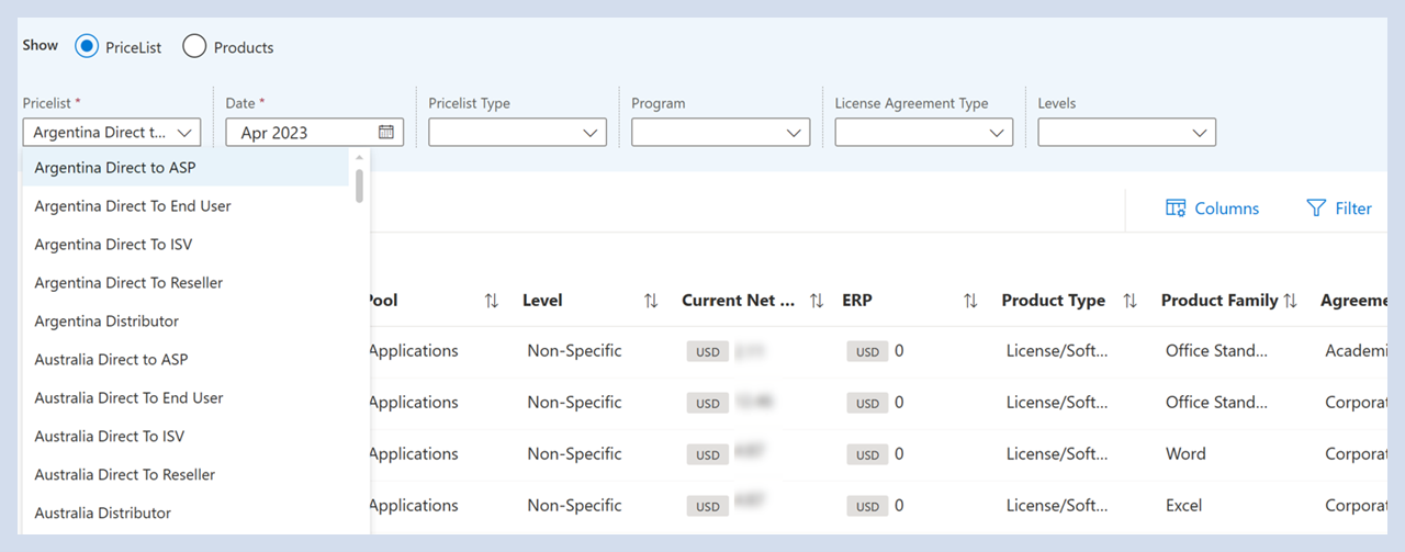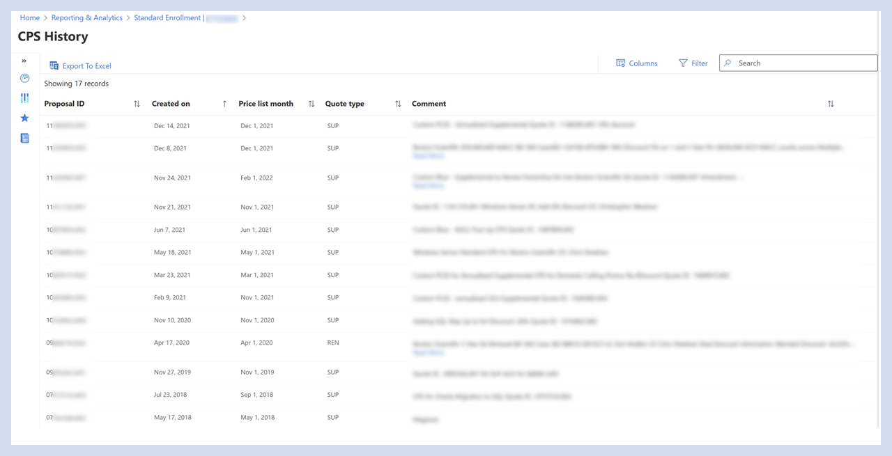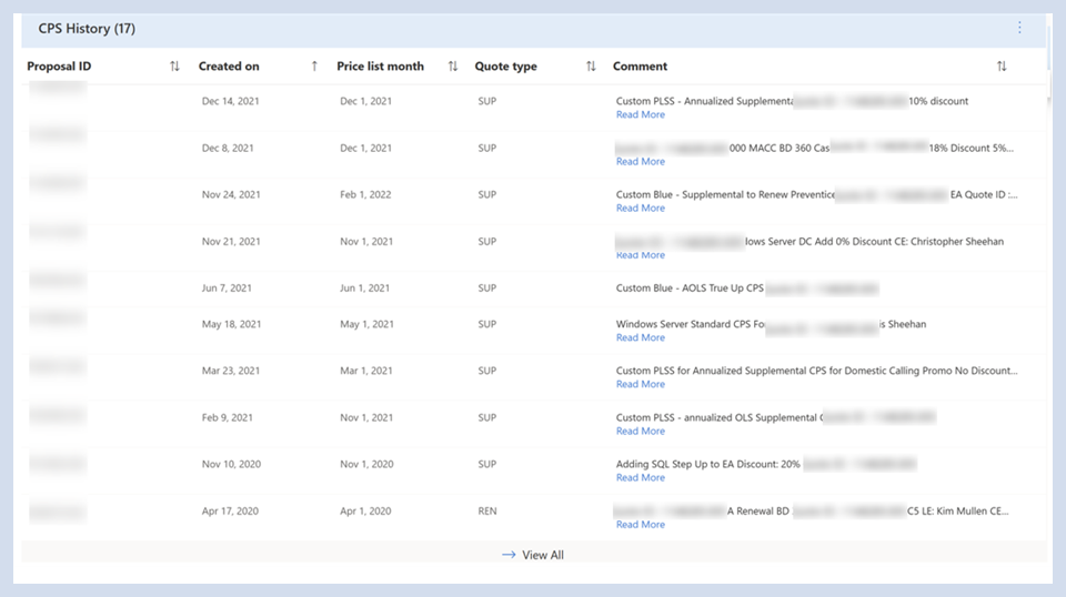 Zeigen Sie alle Datensätze von erstellten CPSs an, um Preise für die Vereinbarung zu sperren.
