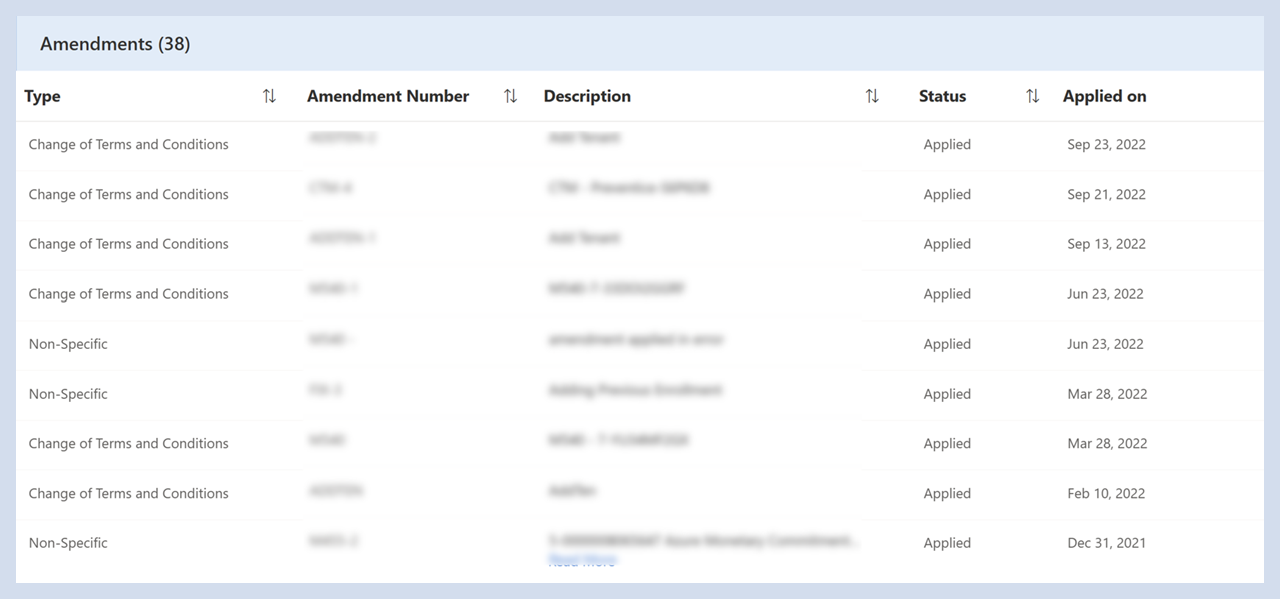 Sehen Sie sich änderungen an, die während ihrer Laufzeit auf die Vereinbarung angewendet wurden.