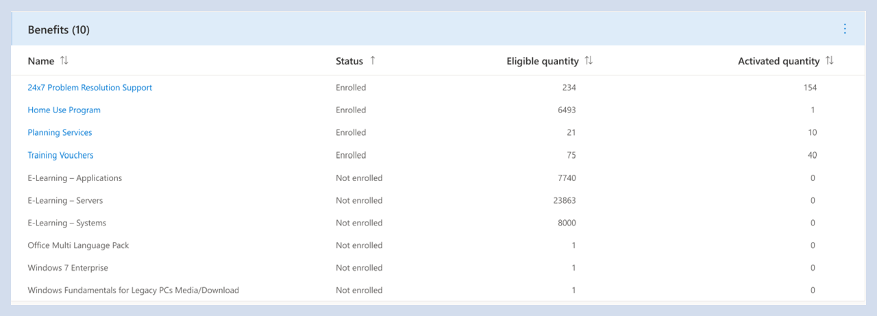 In der Ansicht "Vorteile" finden Sie detaillierte Informationen zu allen verfügbaren Vorteilen. Dieses Feature bietet Benutzern folgende Möglichkeiten: