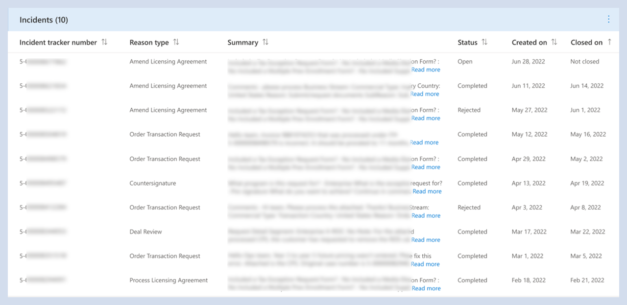 Anzeigen des Vorfallverlaufs von Tickets, die für die Vereinbarung ausgelöst wurden.