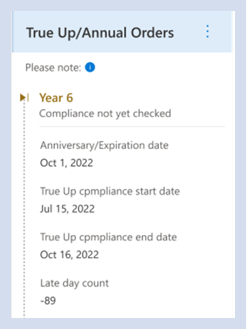 - Anstehende true-up- oder jährliche Bestellung