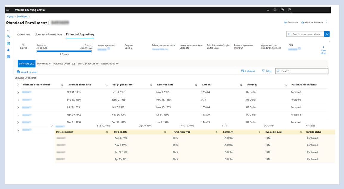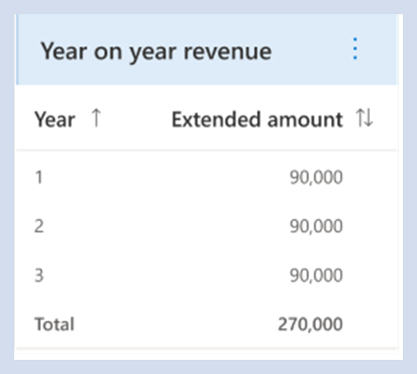 - Anzeigen des Jahresumsatzes – Zusammenfassung des Jahresumsatzes für jedes Jahr des Vertrags