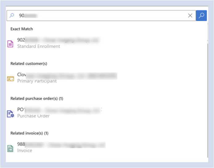 Auf diese Weise können Benutzer Verträge/Verkaufsauftragspositionen nach Partner-PCN oder einem Beliebigen Vertragsteilnehmer-PCN aus dem Filterbereich durchsuchen, indem der vollständige PCN im Teilnehmer-PCN-Filter bereitgestellt wird.