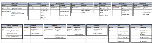 Liste der Schlüsselfelder oder Eigenschaften einer Vereinbarung
