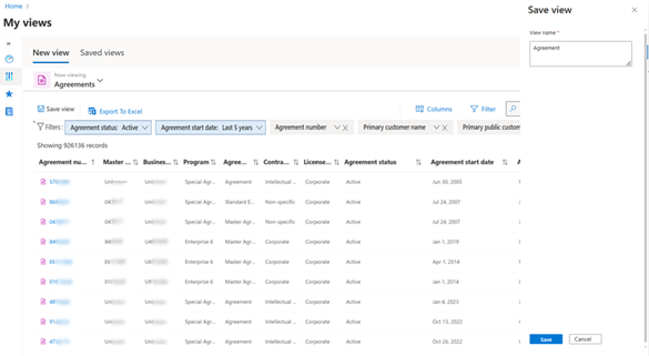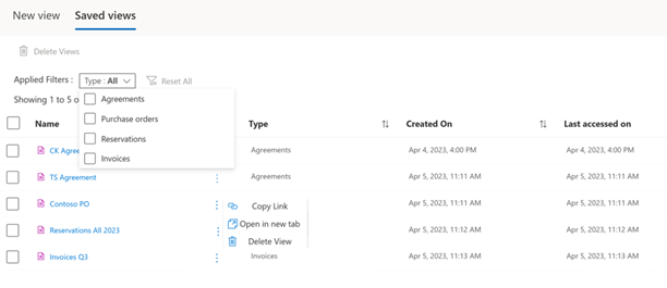 Gespeicherte Ansichten – Filtern Sie einen beliebigen Bericht "Meine Ansichten ", wählen Sie die benötigten Spalten aus, und speichern Sie die Ansicht, um später auf die angepasste Ansicht zu verweisen.
