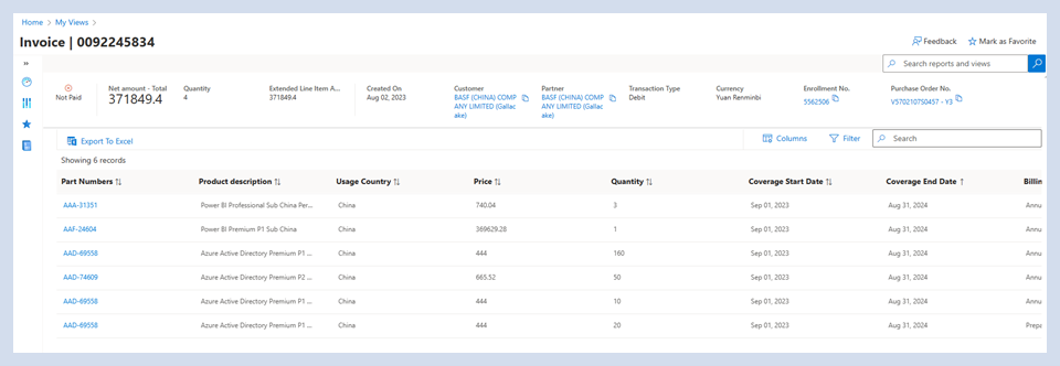 Der Benutzer kann die Erfüllungsdetails zu Onlineabonnements und Online-Verbrauchen finden.