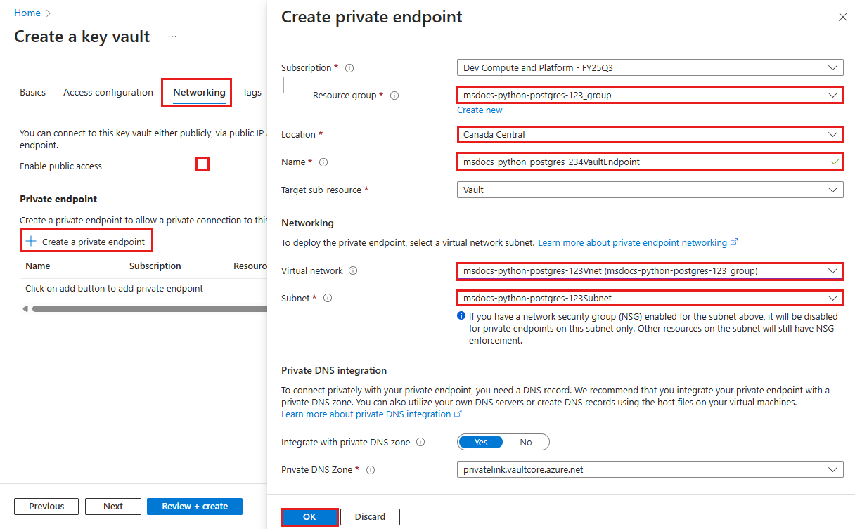 - In Virtual network, select msdocs-python-postgres-XYZVnet.