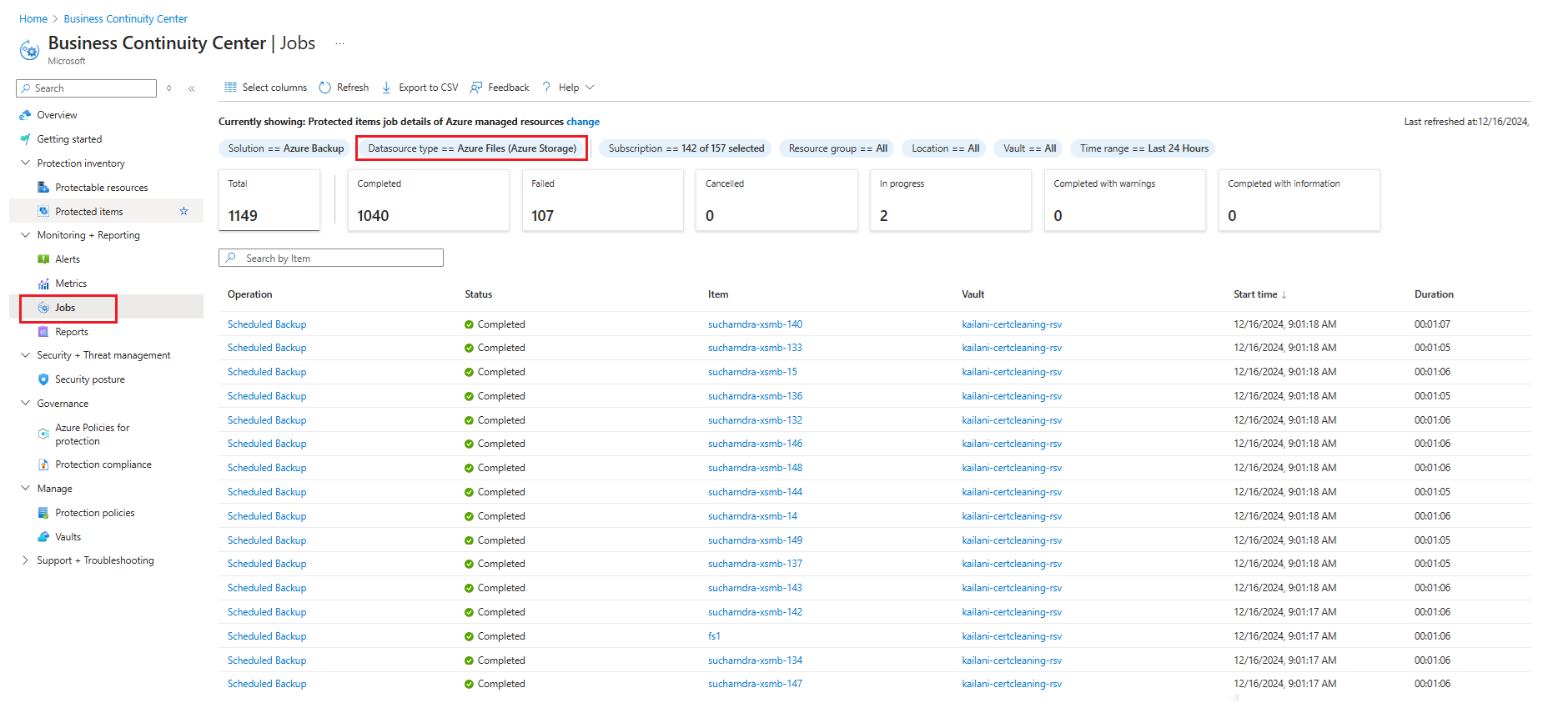Monitor Azure Files backup jobs