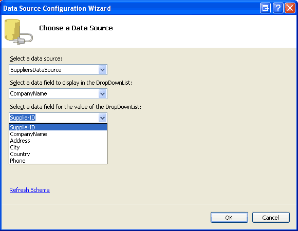 Figure 8: Display the CompanyName Data Field and Use SupplierID as the Value (Click to view full-size image)