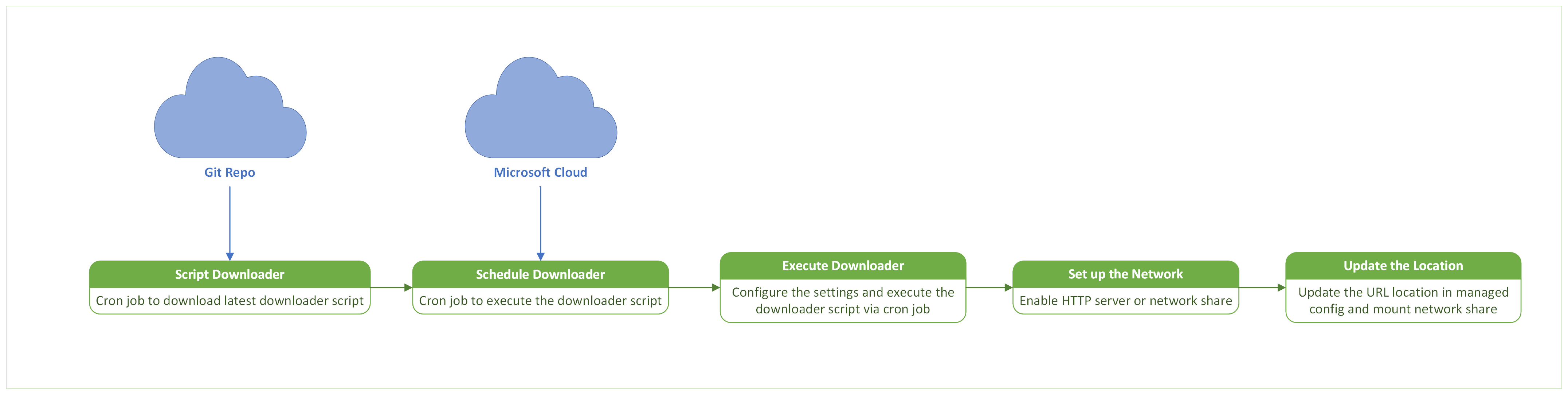 - Signatures are downloaded from Microsoft cloud on this mirror server by executing a script using cron job or task scheduler on the local server.
