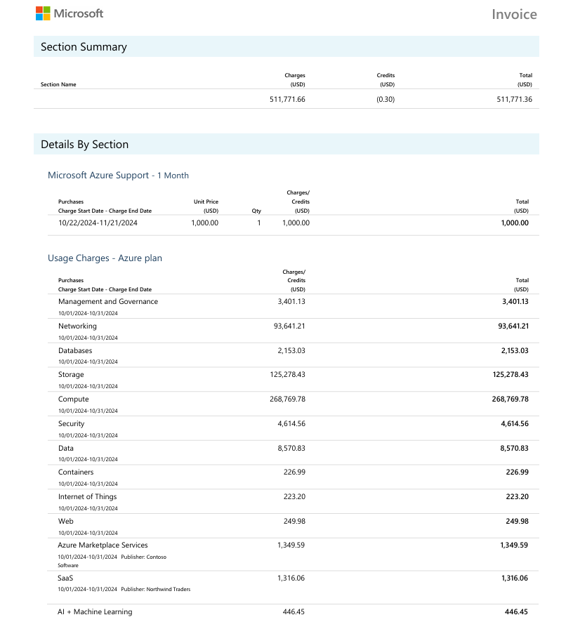 Example 1: an Enterprise Agreement (EA) invoice for the United States, a Microsoft managed country/region for Microsoft Marketplace purchases.*