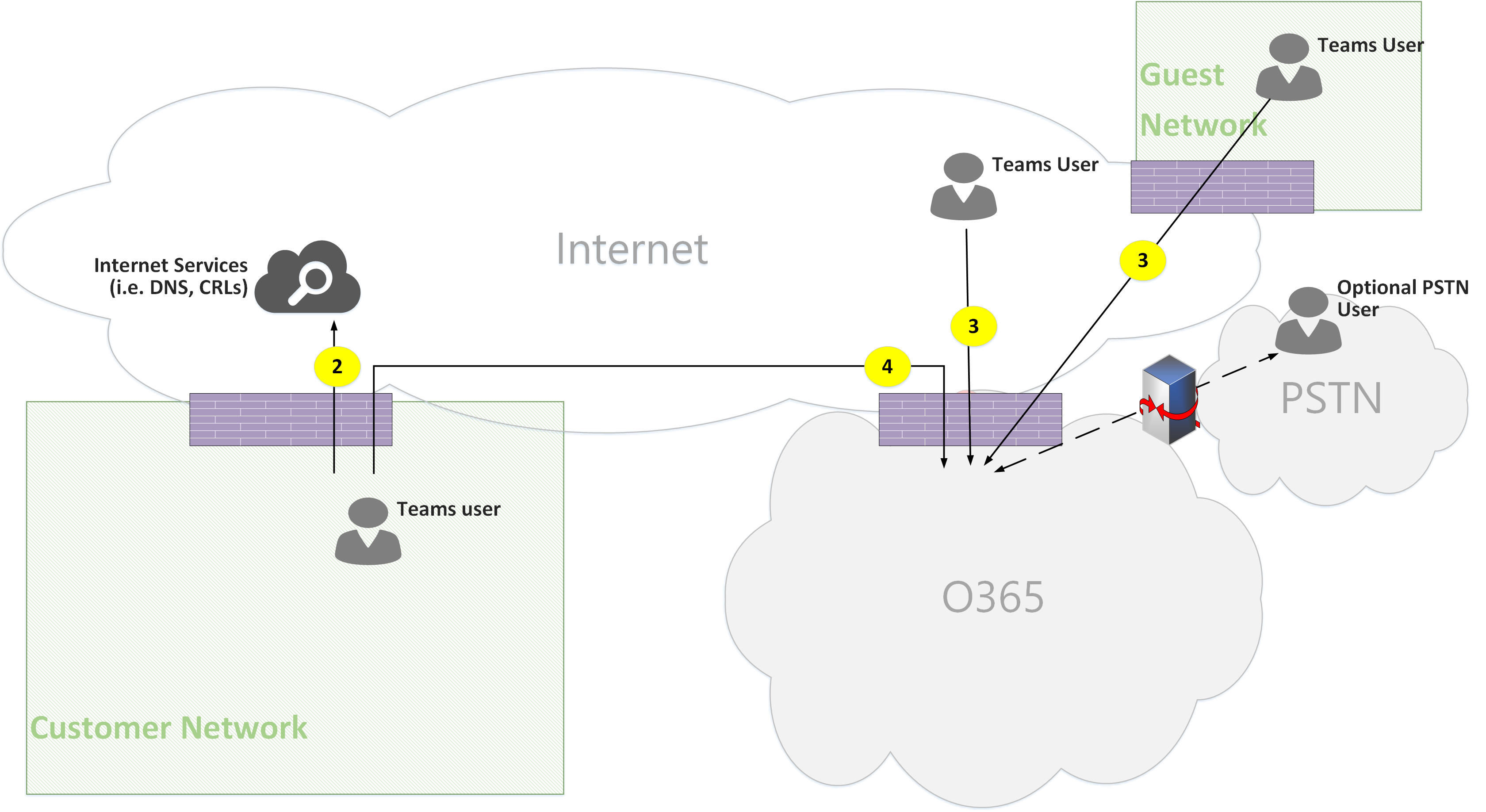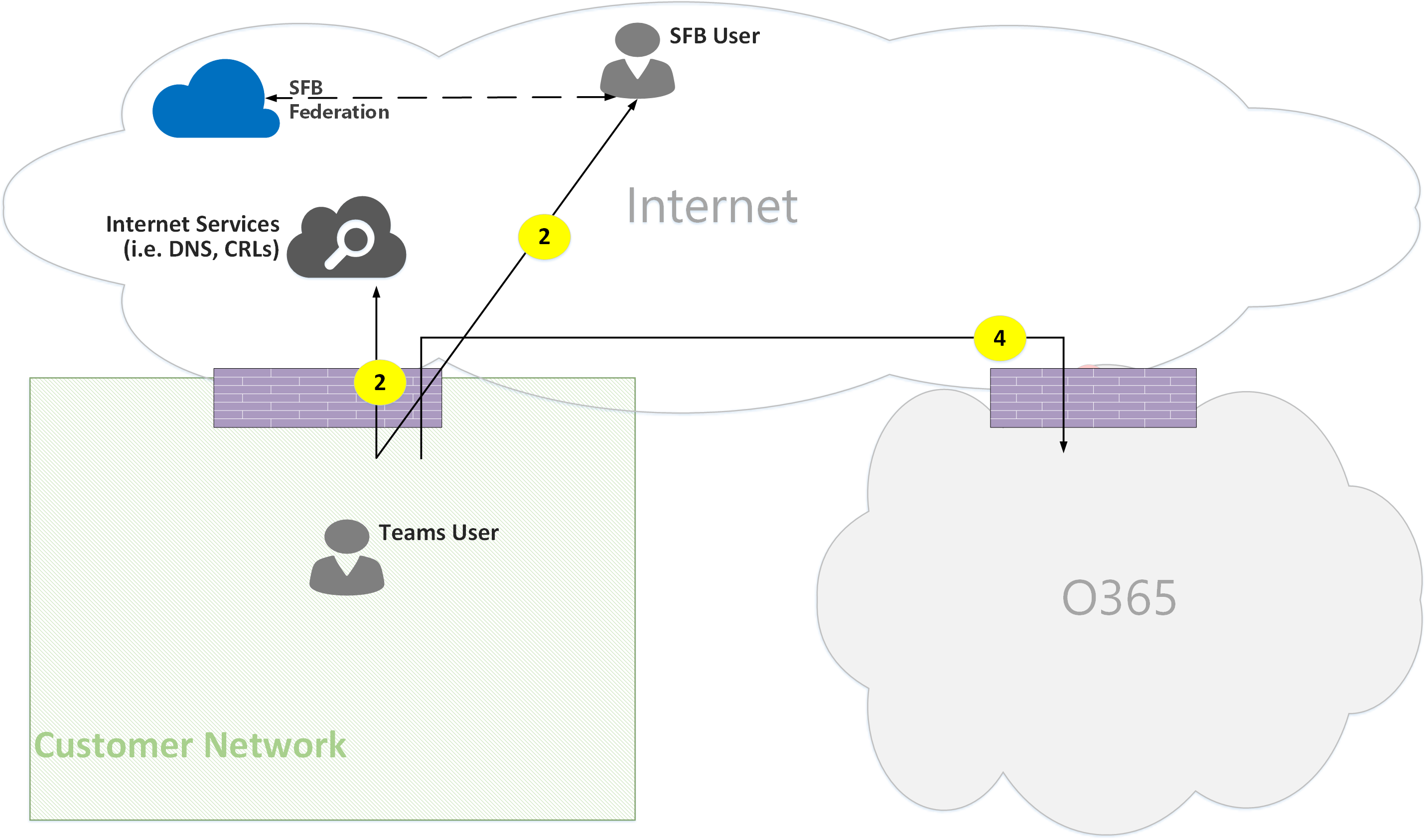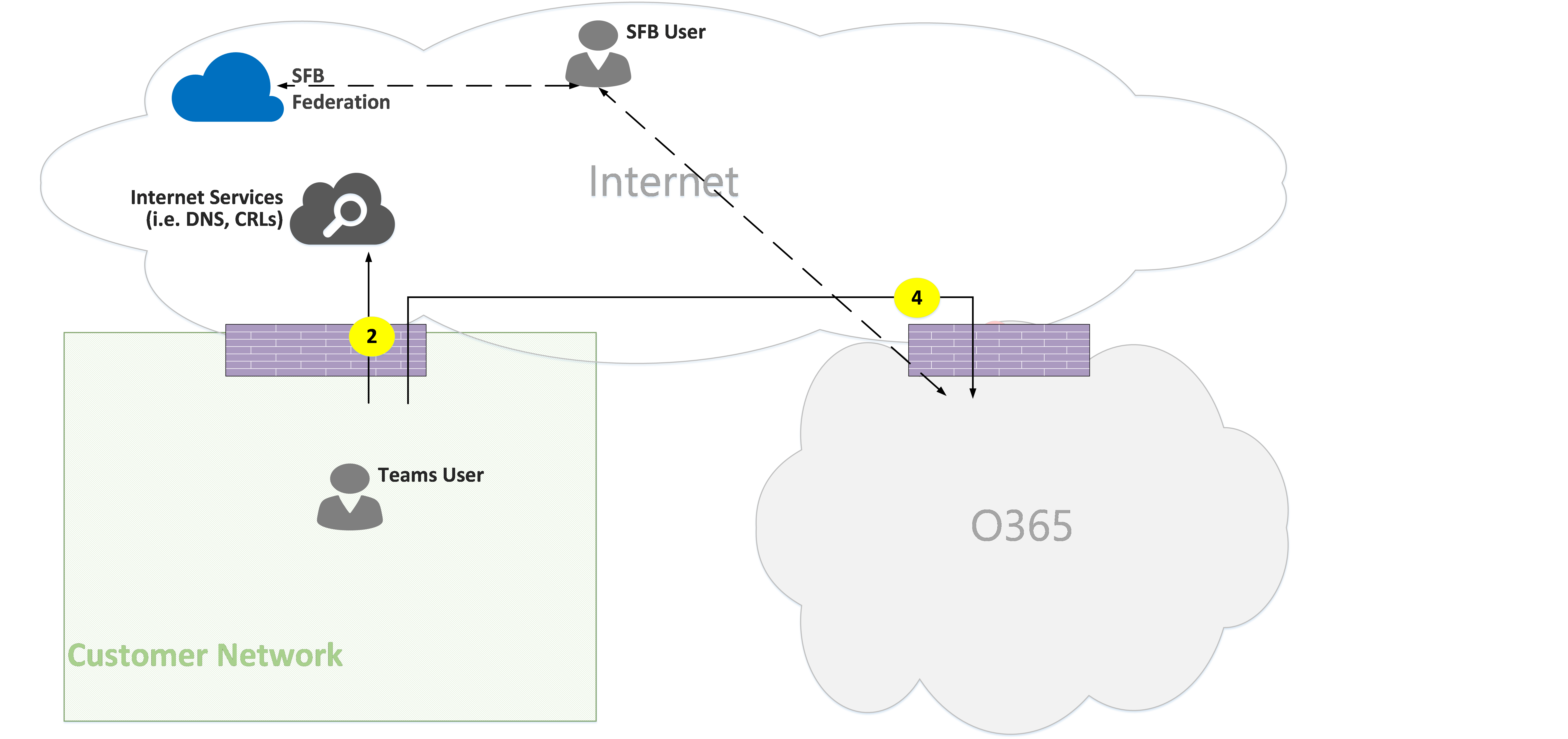 - Flow 4 – Represents a flow initiated by a user on the customer network to Microsoft 365 Teams endpoints.