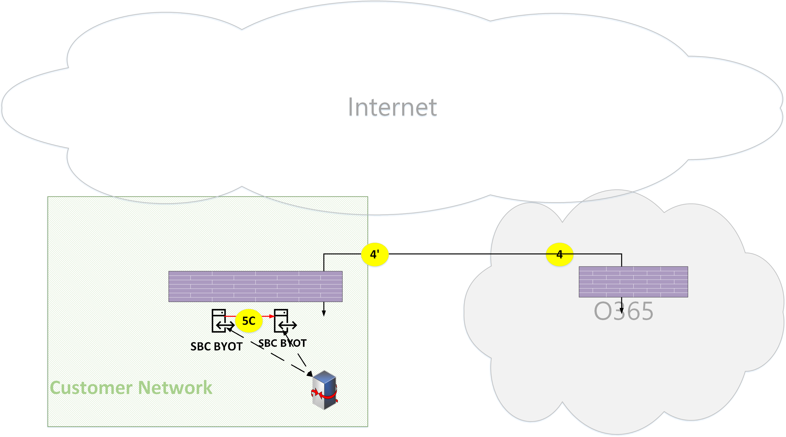 Signaling from the SBC to Microsoft 365 and vice versa uses flow 4 and/or flow 4'.