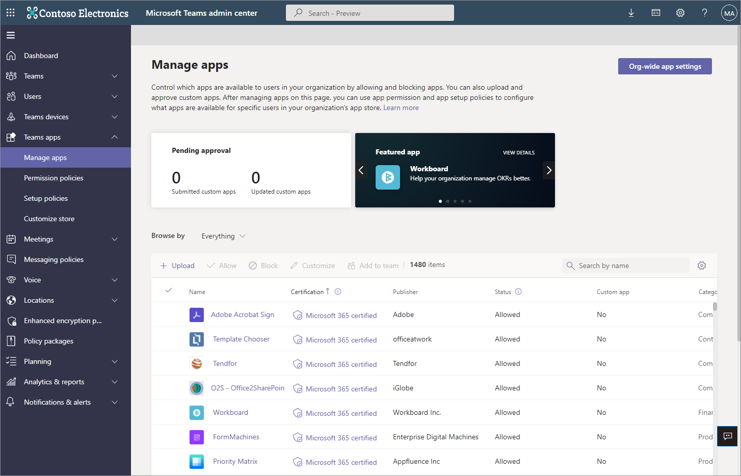 Go to Manage apps to view and govern apps that are available in your organization's app catalog.