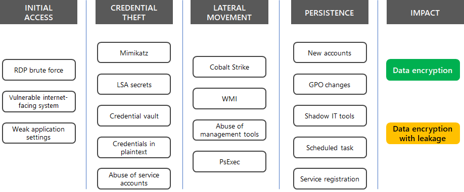 Microsoft Incident Response leverages incident response tools and tactics to identify threat actor behaviors for human operated ransomware. Public information regarding ransomware events focuses on the end impact, but rarely highlights the details of the operation and how threat actors were able to escalate their access undetected to discover, monetize, and extort.