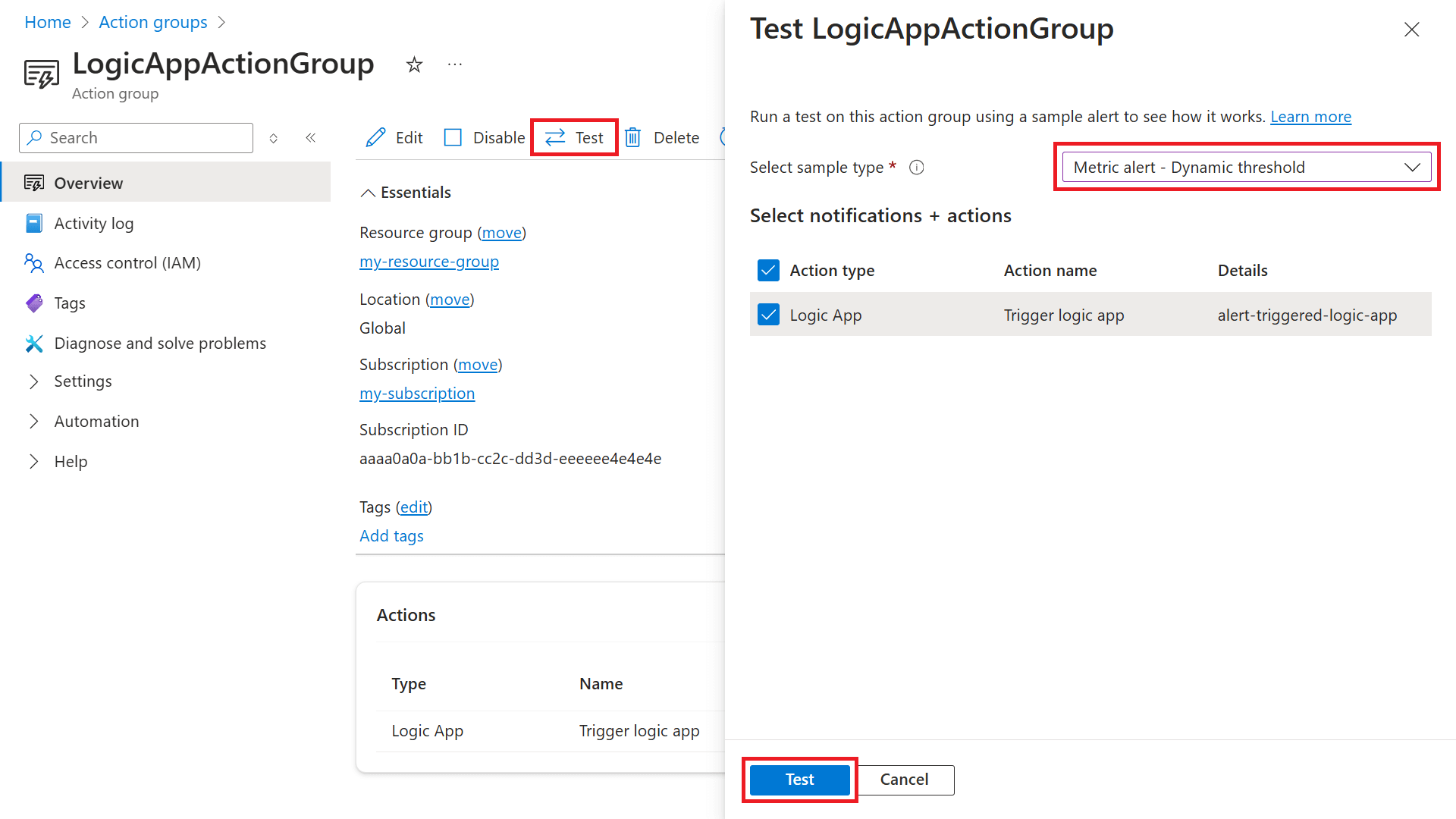 This example creates a logic app that uses the common alerts schema to send details from the alert.