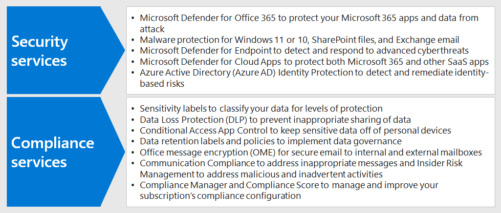 Here are the features of Microsoft 365 that provide security and compliance services for hybrid workers.