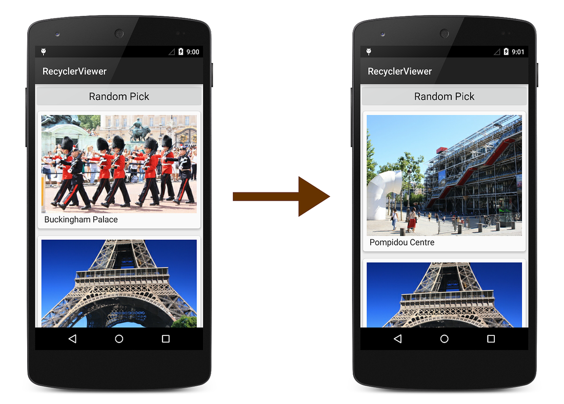 Now, when the Random Pick button is tapped, RecyclerView updates