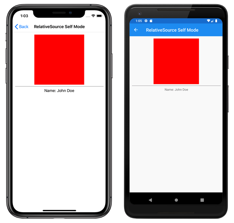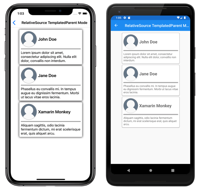 Screenshot of a TemplatedParent mode relative binding, on iOS and Android