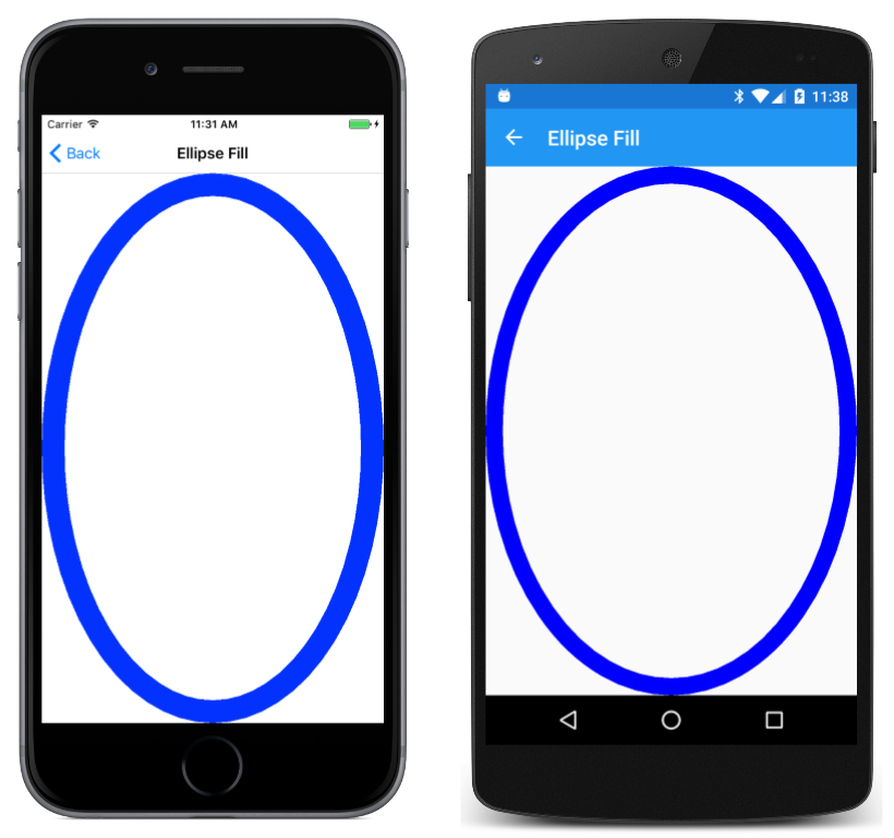 Is it possible to draw an ellipse that fills the display surface? The Ellipse Fill page demonstrates how. The PaintSurface event handler in the EllipseFillPage.xaml.cs class subtracts half the stroke width from the xRadius and yRadius values to fit the whole ellipse and its outline within the display surface: