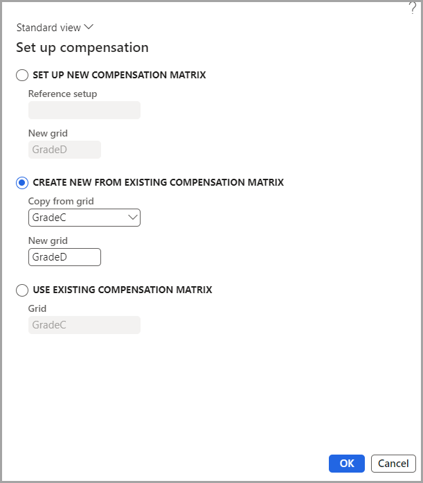 In the Copy from grid field, select the compensation matrix you wish to use for the new compensation plan.