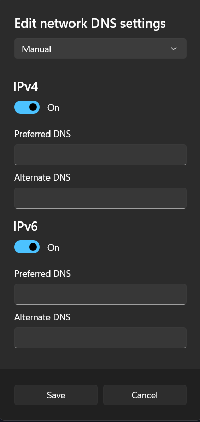 The system does not open settings for all DNS, you can check the DNS options of open settings through the registry: