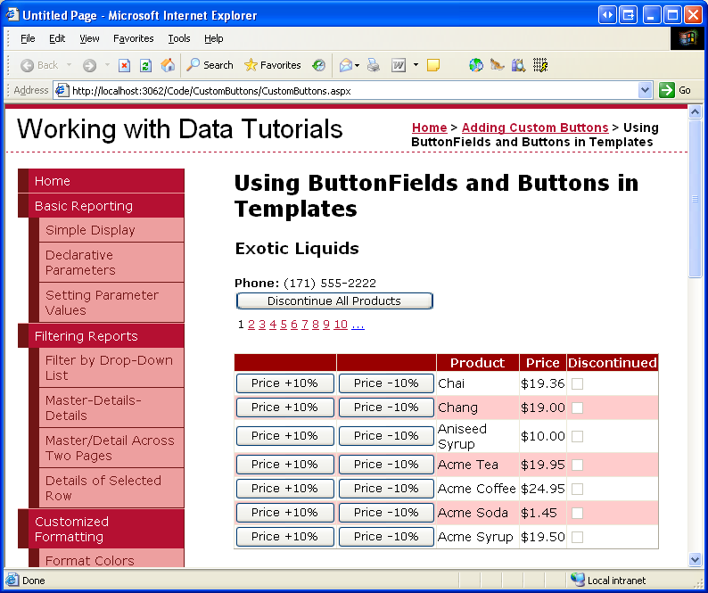 Figure 20: The GridView Includes Price +10% and Price -10% Buttons (Click to view full-size image)