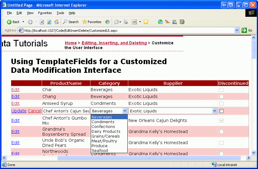 Step 3: Using a DropDownList for the Category and Supplier Editing Interfaces