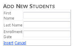 Users can view and update student, course, and instructor information. A few of the screens you'll create are shown below.