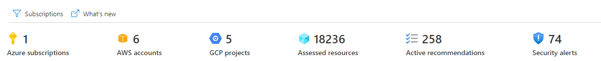 - Subscriptions - View and filter the list of subscriptions by selecting this button. Defender for Cloud adjusts the display to reflect the security posture of the selected subscriptions.