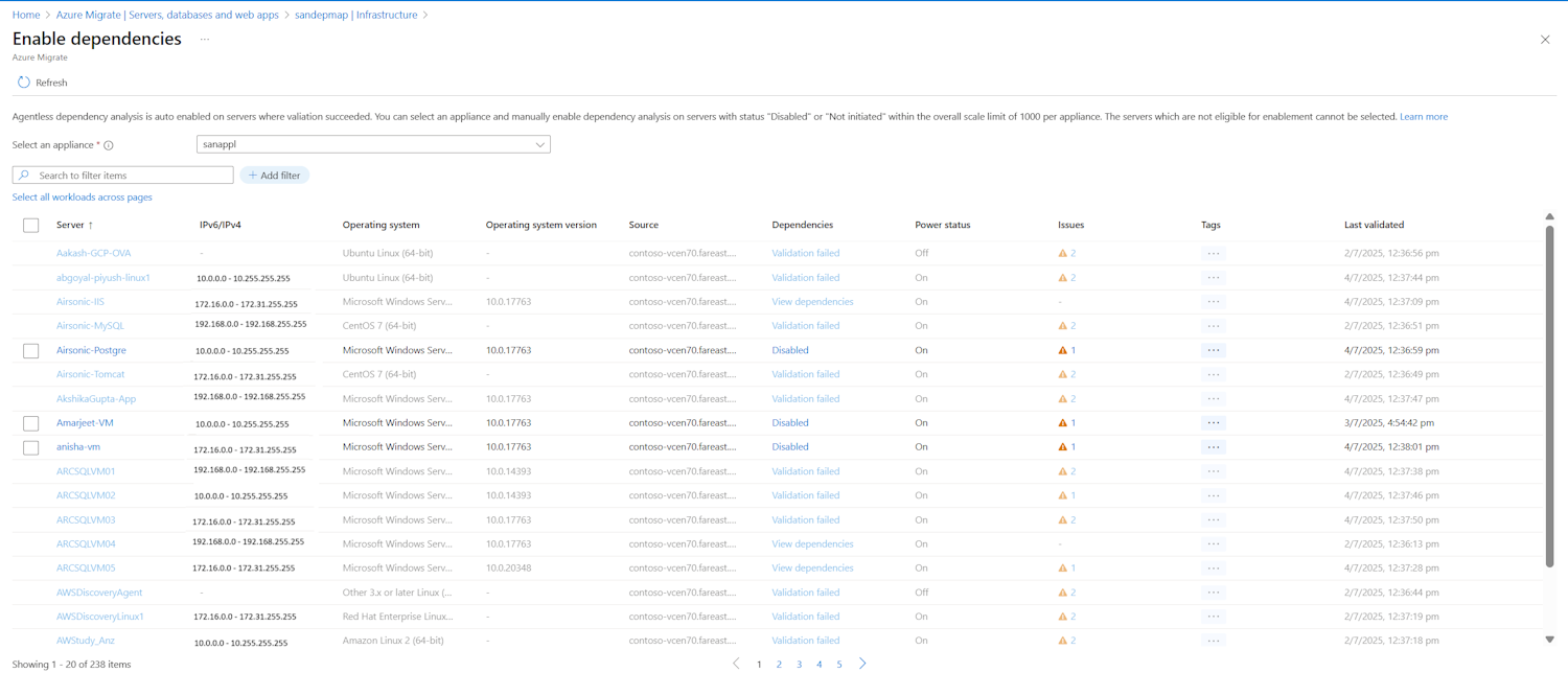 - Dependency analysis runs automatically on 1,000 servers discovered by each Azure Migrate appliance that passes the prerequisite checks. You don’t need to enable it manually anymore.