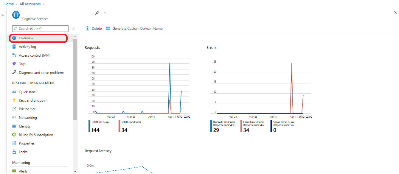 You can view LUIS usage information in the Azure portal. The Overview page shows a summary, including recent calls and errors. If you make a LUIS endpoint request, allow up to five minutes for the change to appear.