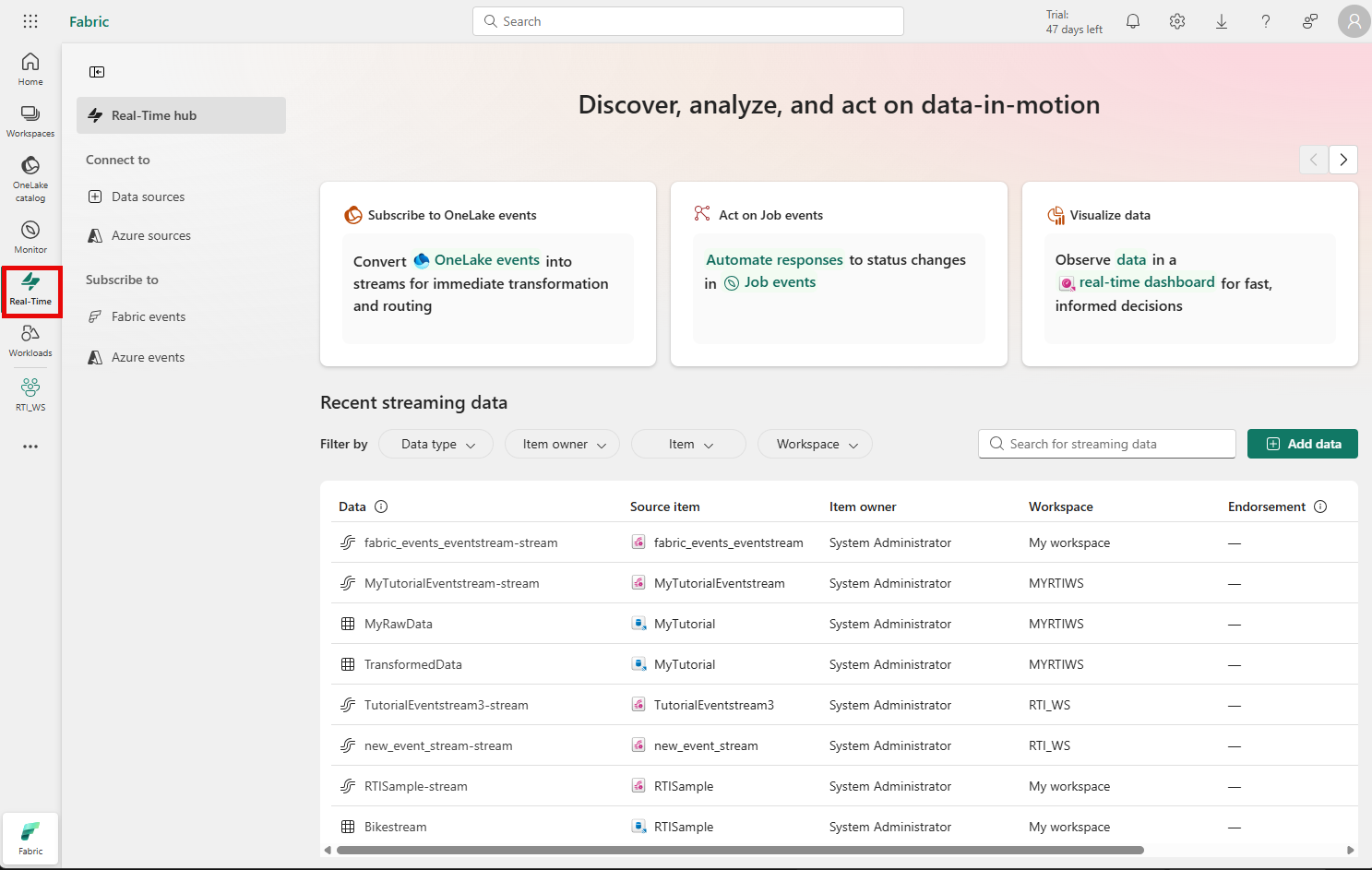 Discover streaming data with the Real-Time hub