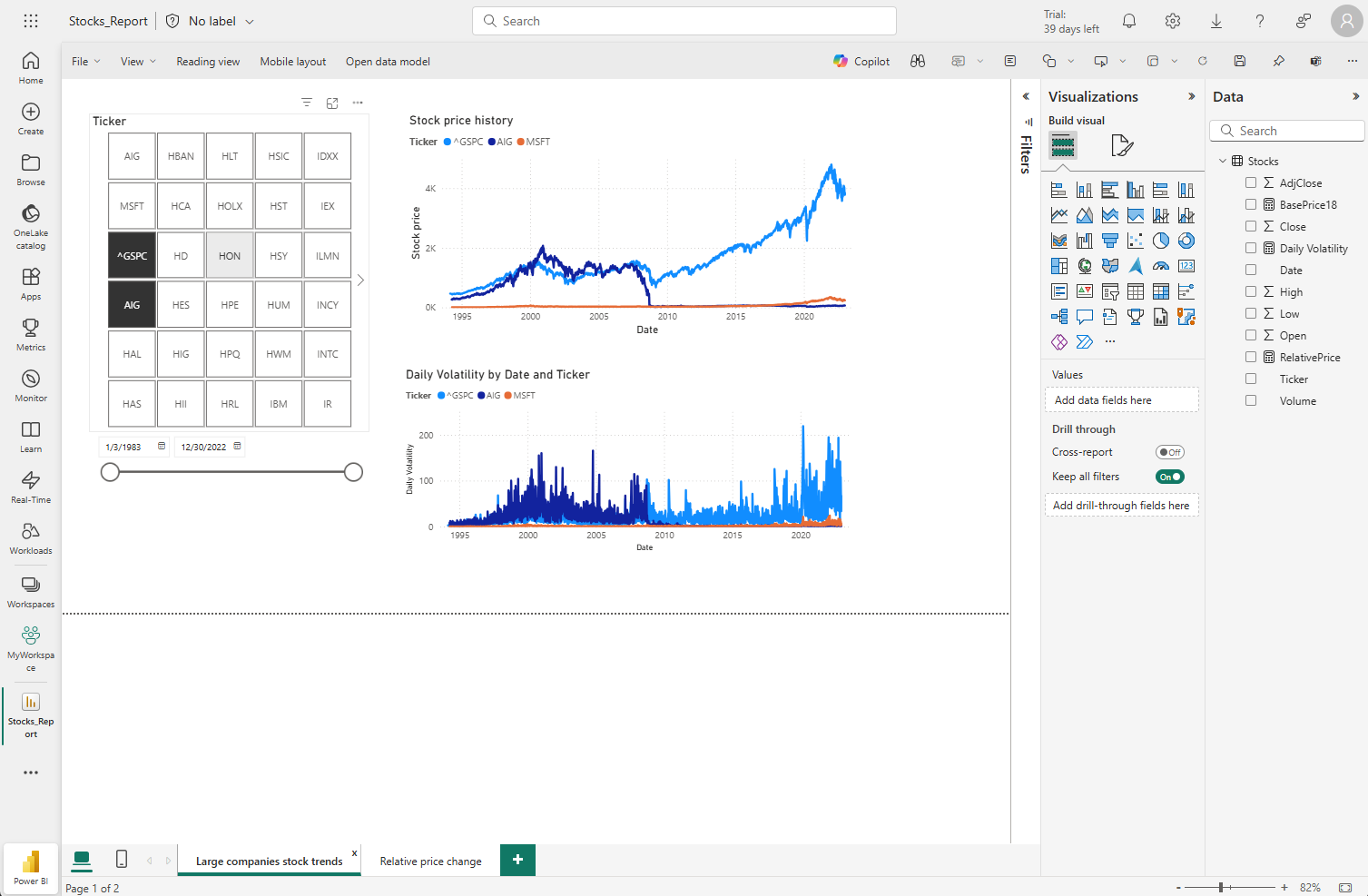 When published, tiles let you explore the data they contain interactively by drilling into the data and using a visual interface to filter and aggregate the data, and change the visualization type.