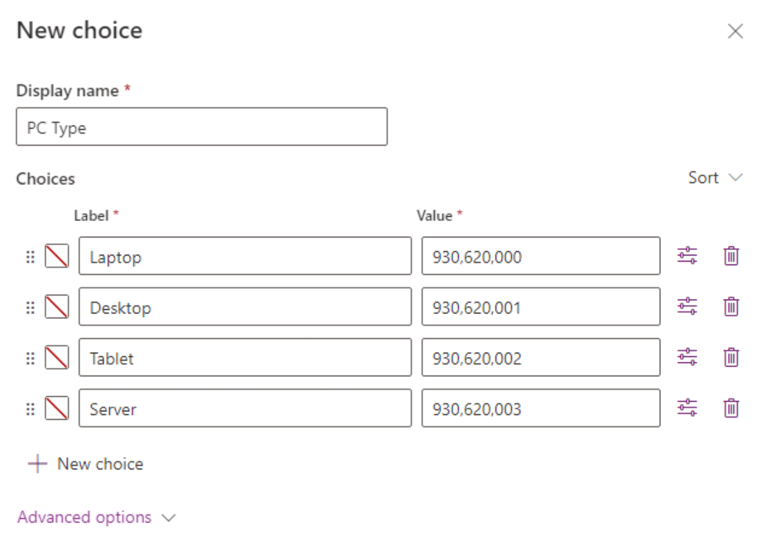 You might want to make a new custom choice to use across many entities in Microsoft Dataverse. You can create a choice in two ways: by creating a choice when you define a new field within a table, or by creating a choice using the choice functionality within the Power Apps portal.