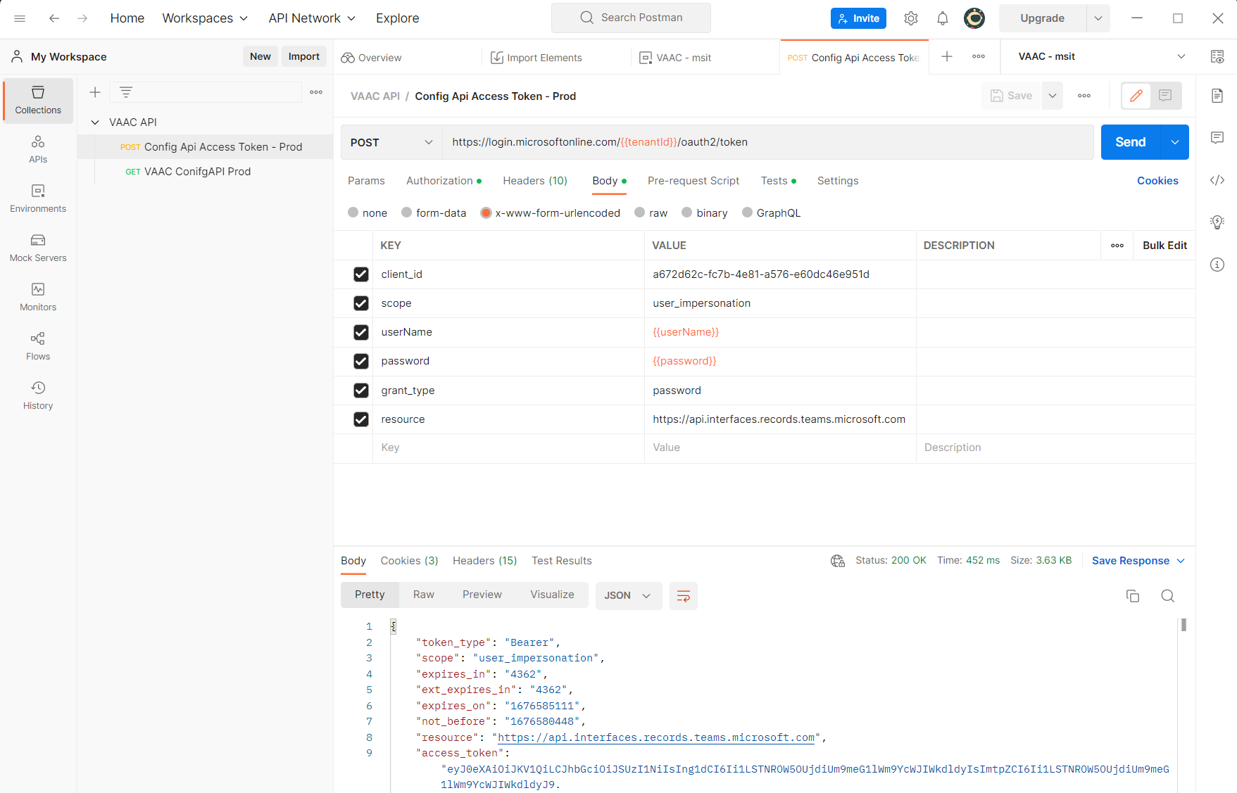 Accessing VAAC using Postman