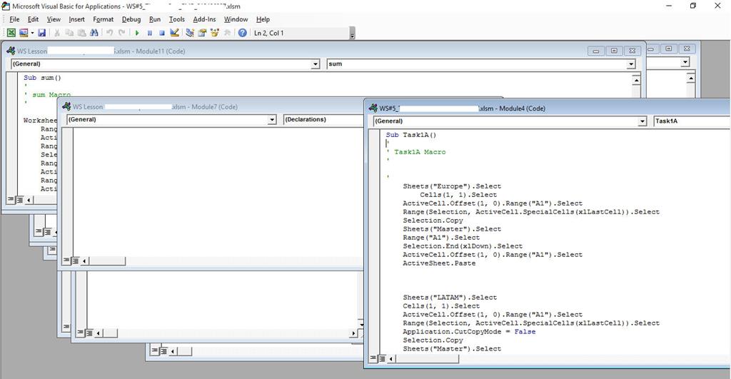 I don't know what I did but all the sudden when I go to edit one macro, the VBA editor opens them all at once. It's messy...and it's opening ones that aren't even in the sheet I selected so it's hard to find what I"m looking for. I assume I have a setting I changed by accident, but I don't know what or how to change it back.