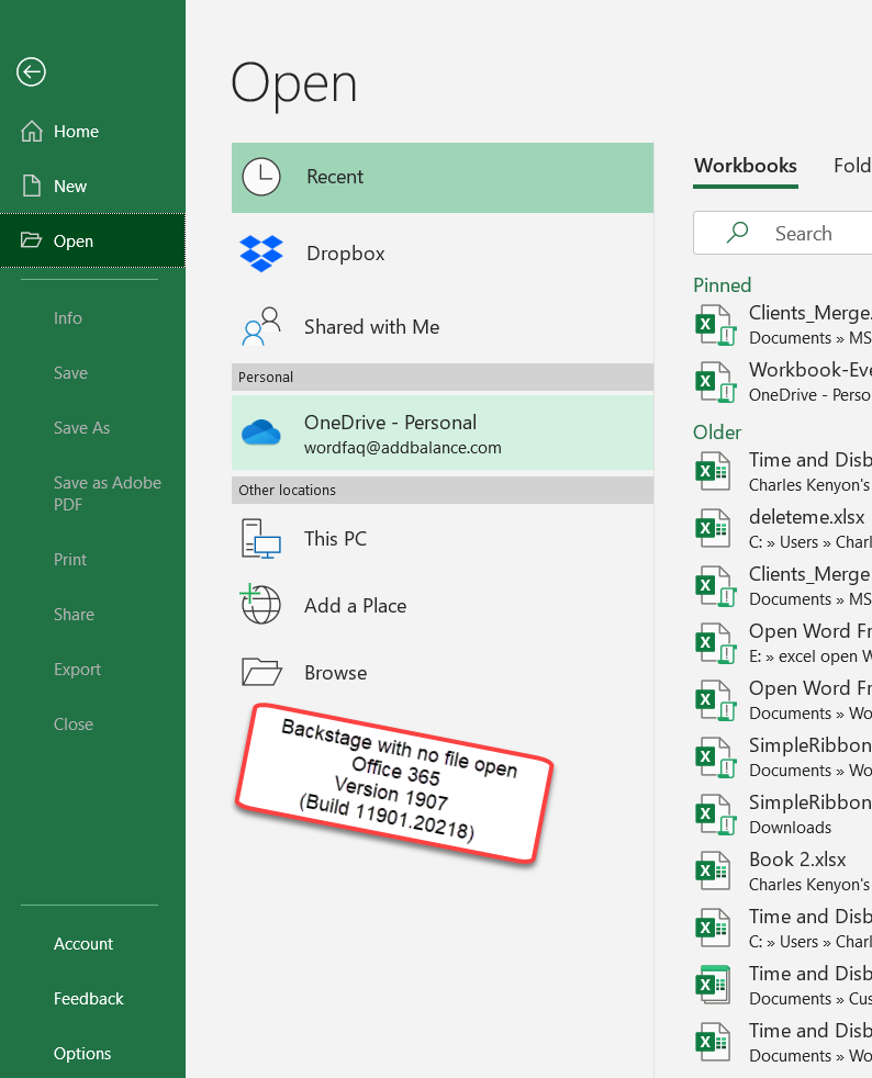 The first screen you show is the Splash screen to open the program without any document already open. Here is my File (Backstage) view with the program open.