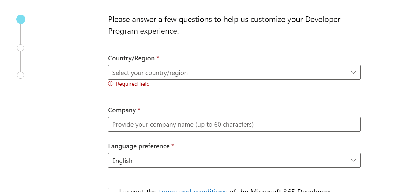 https://developer.microsoft.com/en-us/microsoft-store/register/ Microsoft 365 Developer Program FAQ https://docs.microsoft.com/en-us/office/developer-program/microsoft-365-developer-program-faq#what-is-the-microsoft-365-developer-program-and-who-should-join-it-