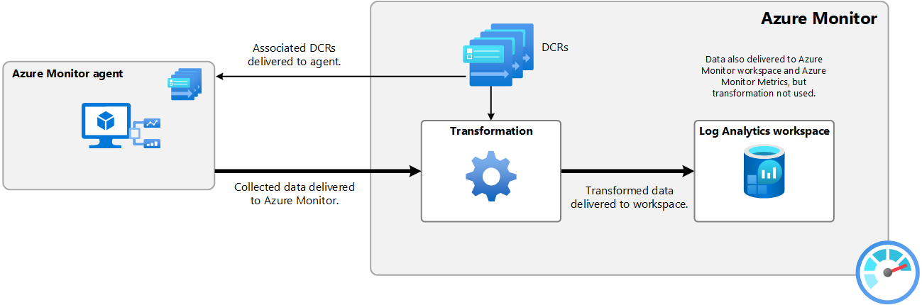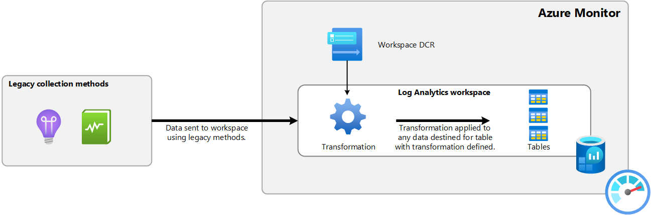 Workspace transformation DCRs provide transformations for data collection that doesn't use a DCR. They're applied directly to the Log Analytics workspace and are automatically activated when they're created.