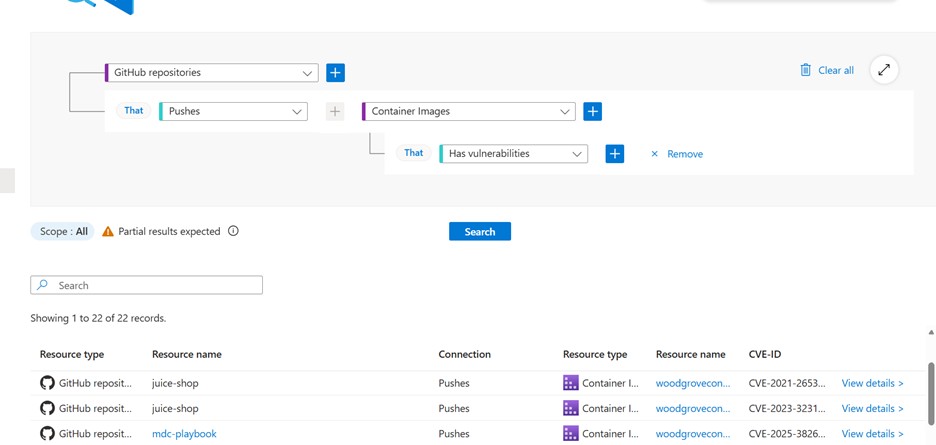 Go to Cloud Security Explorer and perform the query. The validation queries test whether Defender can identify artifacts produced by your pipelines and workloads. If the queries return results, it indicates that scanning and correlation are working as expected.