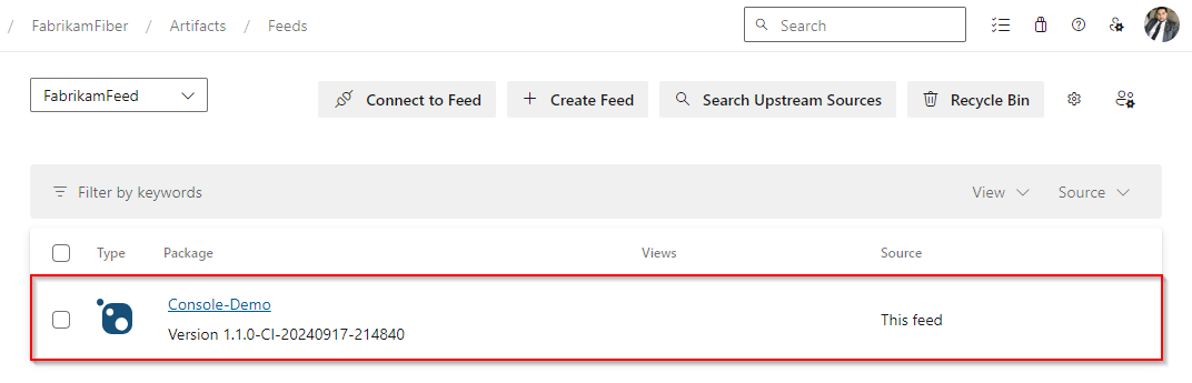 Publish NuGet packages to a feed in the same organization