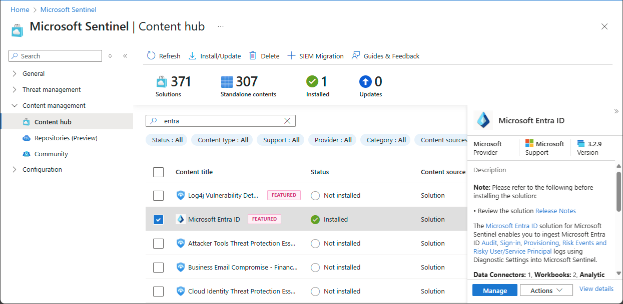 In this step, you install the Microsoft Entra ID solution and use the Microsoft Entra ID connector to collect data from Microsoft Entra ID.